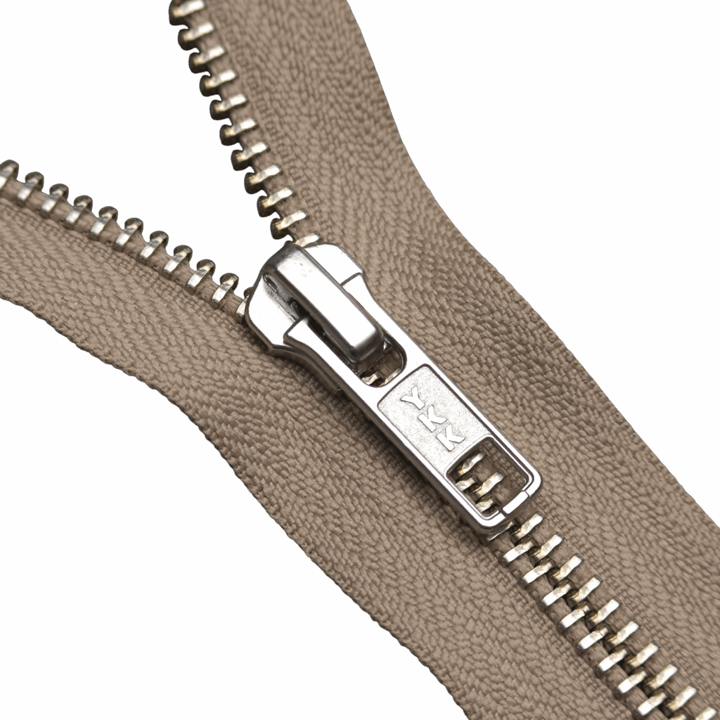 Metal zippers are exceptionally durable due to their metal teeth, usually made of brass with a Y-shaped profile or mounted individually as European, Swiss, or polished teeth. This construction ensures exceptional precision of fit and high resistance to mechanical stress and long-term use. While less flexible than plastic or nylon options, metal zippers make up for this with their strength, locking power, and resistance to intensive use. They're perfect for leather jackets, jeans, bags, and shoes where maximum durability is required.