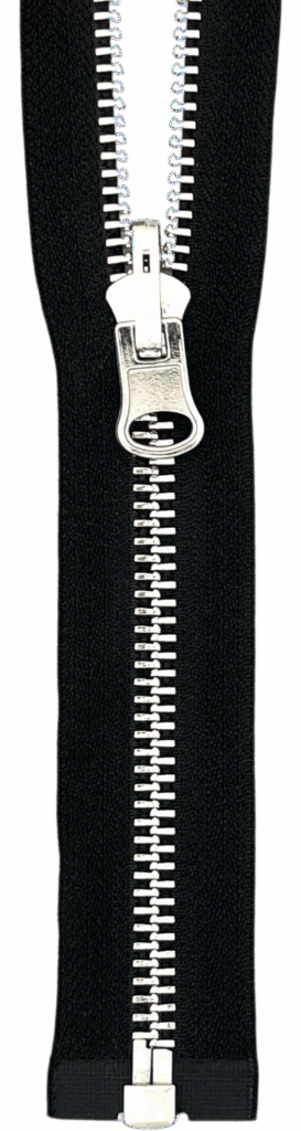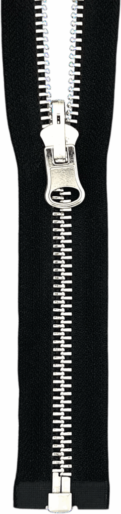 A separating zipper with large 12mm or 15mm teeth, used in fashion.