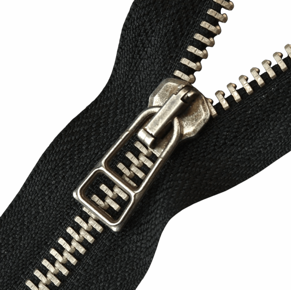 Metal zipper teeth are typically made from several premium materials. Brass teeth are the most common, formed from specially profiled wire in Y-type configuration or attached individually as European, Swiss, or polished teeth. We also offer zippers with teeth made of stainless steel for superior durability and corrosion resistance, as well as teeth injection-molded from zinc-aluminum alloy. Each material offers different properties in terms of strength, appearance, and resistance to environmental factors, allowing you to choose the best option for your specific application.